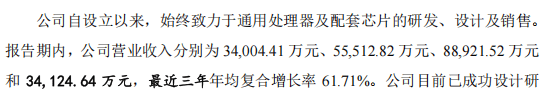 兆芯集成报告期内的财务数据存在诸多令人费解之处。公司营收从2022年的3.4亿元增长至2024年的8.89亿元,年均复合增长率达61.71%。