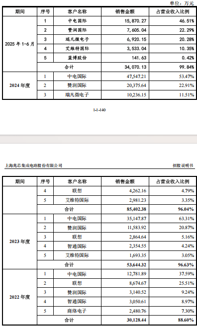 兆芯集成的客户集中度高得离谱。2024年前五大客户销售占比高达96.04%,2025年上半年更是达到99.84%。这意味着公司几乎完全依赖少数几个大客户生存。