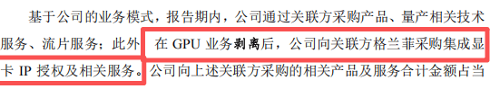 兆芯集成与参股公司格兰菲的关联交易尤为引人关注。2020年公司剥离GPU业务成立格兰菲,此后向格兰菲采购集成显卡IP授权及相关服务。