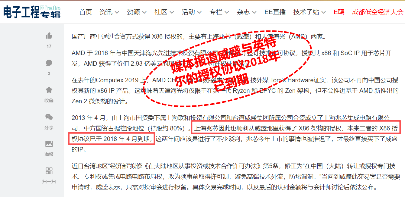 有资深从业者指出:“兆芯获得的只是威盛早期的x86指令集架构,与海光信息从AMD获得的Zen架构授权存在代际差距”。