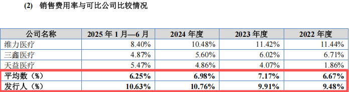 销售费用率畸高且持续上升,从2022年的9.48%攀升至2024年的10.76%,显著高于同行业6.67%、7.17%、6.98%的平均水平。
