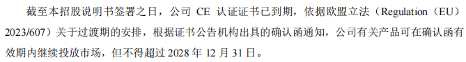 而占营收13%的境外市场命悬于此,公司却未在招股书中披露具体认证进展。