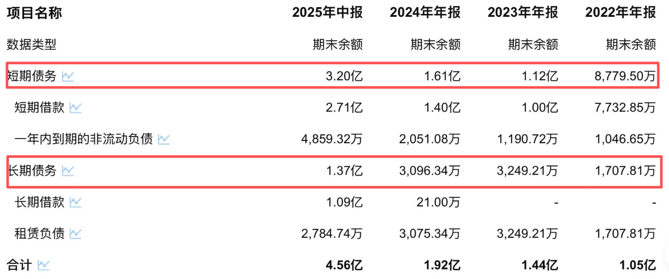 维通利背负的有息债务正以惊人速度膨胀。从2022年的1.05亿元猛增至2025年上半年的4.56亿元,短短三年半时间激增超过4倍,远超同期营收增长。