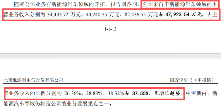 维通利业务增长高度依赖新能源汽车行业的快速发展。招股书显示,公司来自新能源汽车领域的主营业务收入占比已从2022年的26.36%提升至2024年的38.32%。