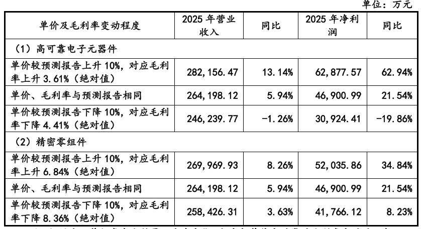 报告期内,公司电子元器件产品以高可靠产品为主,主要应用于防务领域,高可靠产品占电子元器件销售收入的平均比例为89.41%。高可靠产品中又以陶瓷电容器为主,报告期内陶瓷电容器占高可靠产品销售收入的平均比例为63.20%。公司经营业绩主要受高可靠产品收入变动的影响。