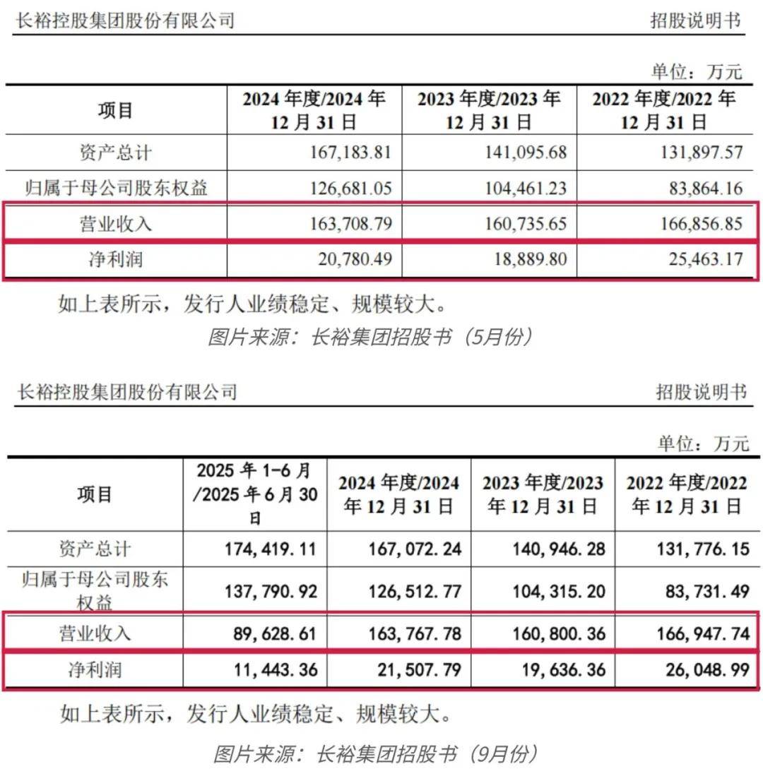 仔细对比长裕集团于2025年5月和9月披露的招股书,可以发现其对最近三年(2022年至2024年)的营收与净利润数据进行了调整。
