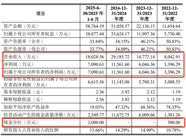 《新财闻》获悉,频准激光在2022年至2025年上半年实现的营业收入分别为8042.91万元、1.48亿元、2.92亿元和1.80亿元,复合增长率达90.49%。而同期扣除非经常性损益后归属于母公司股东的净利润分别为3088.55万元、5780.31万元、11,143.08万元和 6615.36 万元。