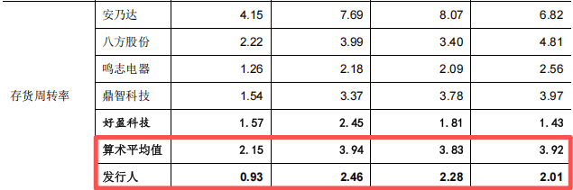 第二把“剪刀差”:营收增长与存货周转停滞。 报告期内,公司存货账面价值从9251.55万元增至15593.78万元。尽管营收增长,但存货周转率(2.01次/年、2.28次/年、2.46次/年)远低于行业平均水平(约4.3-4.5次/年)。特别是库存商品占比从36.9%升至42.29%,结合低产能利用率,共同指向产品可能面临一定的滞销风险或生产计划与市场实际需求脱节。营收高增长与存货周转低效率并存,构成了数据上的矛盾。