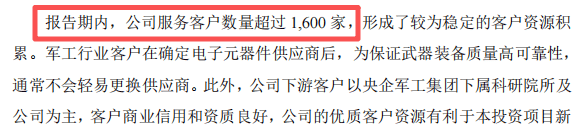 在客户集中度方面,招股书显示公司客户数量超过1600家,但未披露前五大客户的具体销售额占比。这种“分散”的客户结构与军工行业通常较高的客户集中度特征形成了有趣对比。