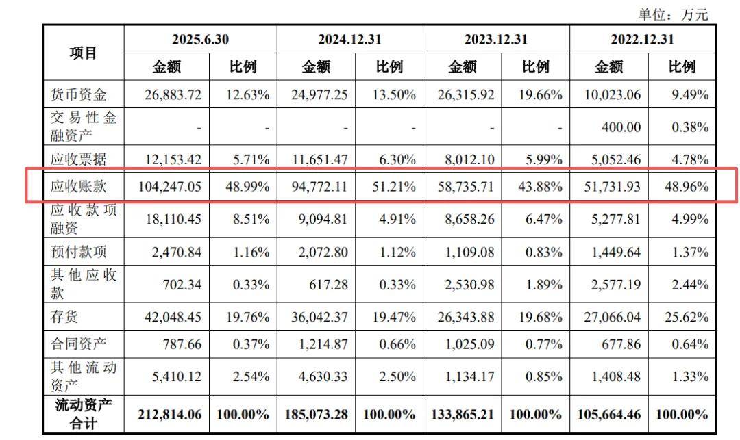 不过公司报告期内虽营收与净利润双增,但财务端“纸面富贵”特征明显,应收账款占流动资产的比例超51%、短期偿债能力持续弱化、2025年上半年经营现金流转负,以及缺失1.17亿元的收入凭证等问题引发市场争议。