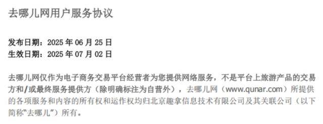 在蔡女士保存的平台2021年6月10日发布的服务协议中,对于争议问题的约定为:如双方就本协议内容或其执行发生任何争议,双方应尽量友好协商解决;协商不成时,任何一方均可向北京趣拿信息技术有限公司所在地的人民法院提起诉讼。