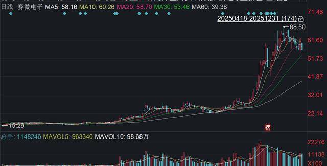 值得一提的是,赛微电子于2025年12月31日大跌9.96%报55.96元/股,总市值约409.75亿元,近一年累计上涨超225%。